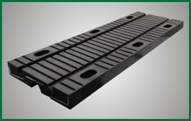 橡膠伸縮裝置利用橡膠材料剪切模量低的原理設計制作而成的,在剪切型橡膠伸縮體設有上下凹槽,橡膠體內埋設承重鋼板和錨固鋼板,并預留螺栓孔,通過螺栓與梁端連成整體跨越梁端間隙。依靠上下凹槽之間的橡膠體剪切變形來滿足梁體結構的相對位移。具有伸縮量大、行車平穩等優點。該產品可用于公路橋梁結構中。
