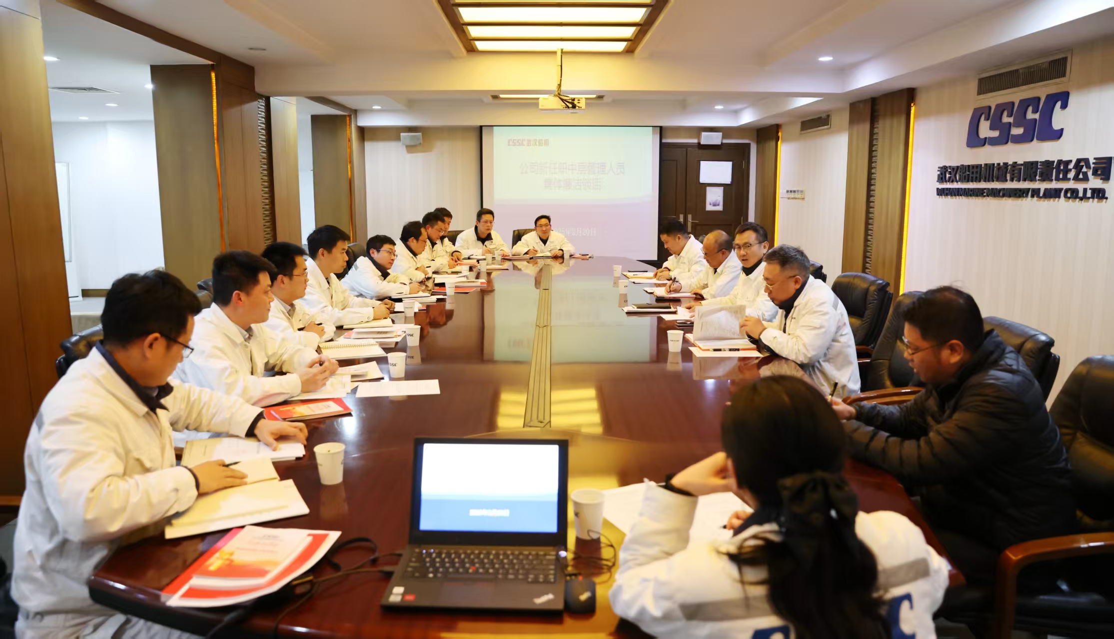2月20日,中國船舶武漢船機開展新任職中層管理人員集體廉潔談話。公司黨委副書記、總經理程立兵,公司黨委委員、總會計師陳世龍參加。